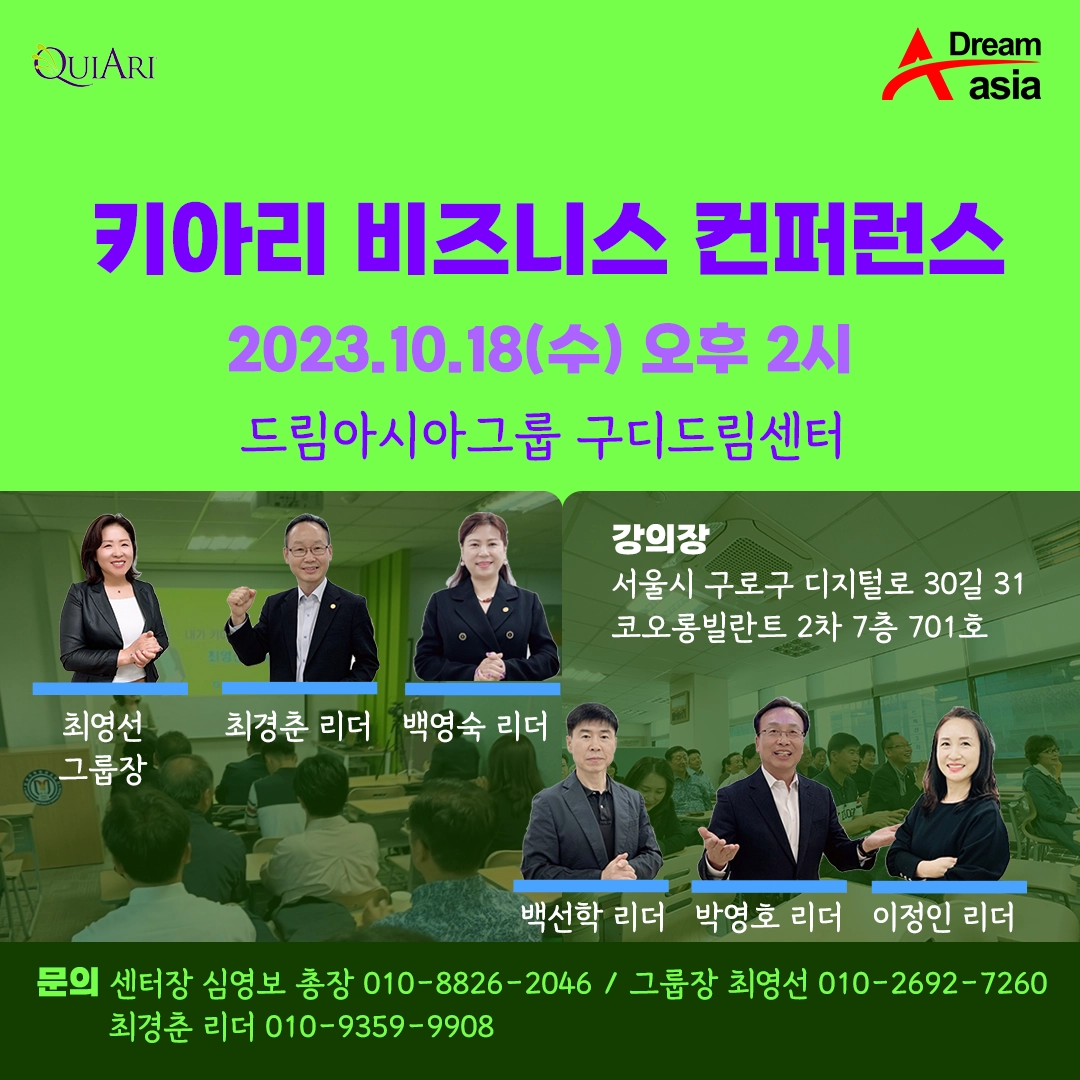 드림아시아그룹 비즈니스 컨퍼런스 2023.10.18(수) 오후 2시, 구디드림센터