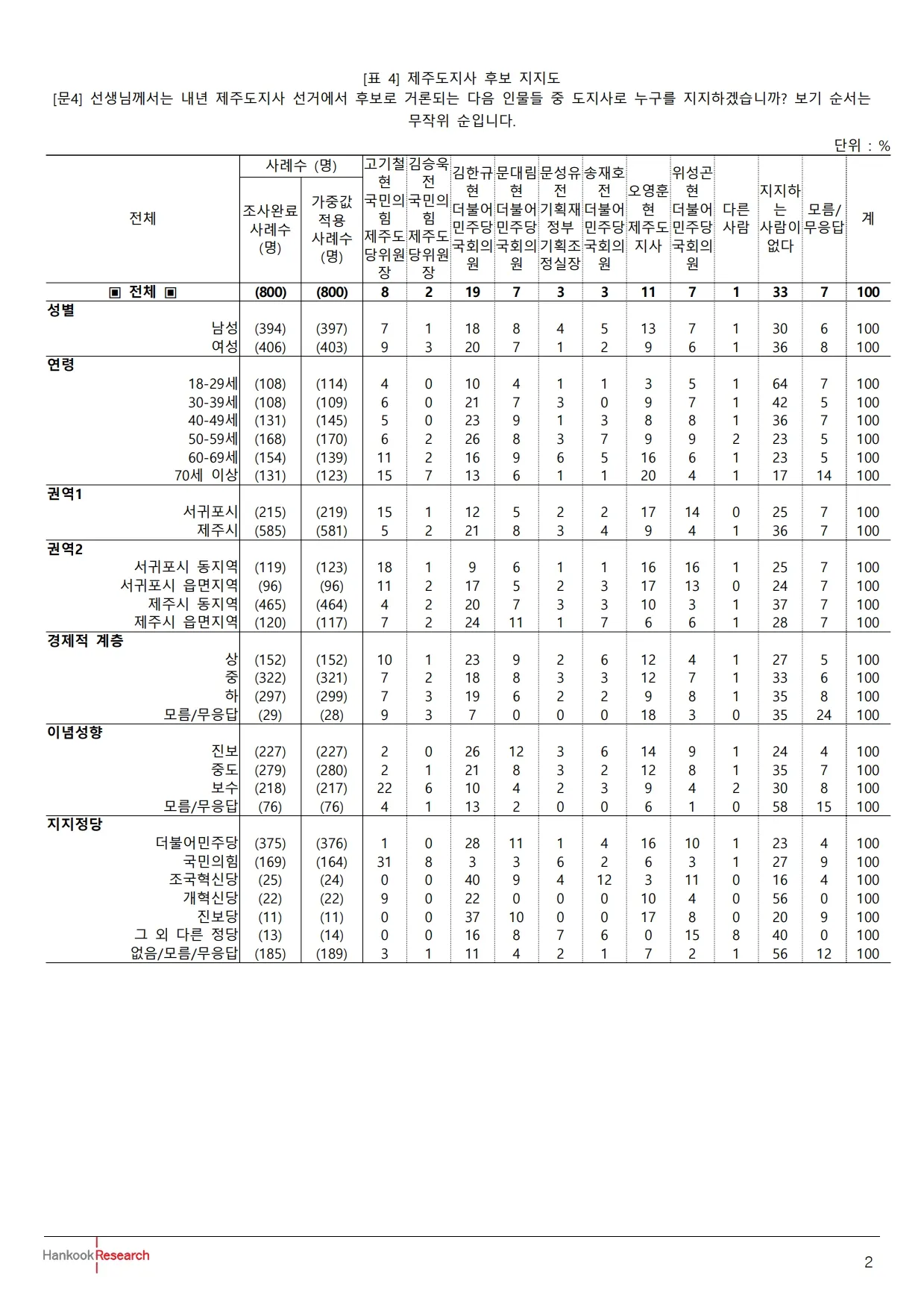 제주도지사 후보 지지도