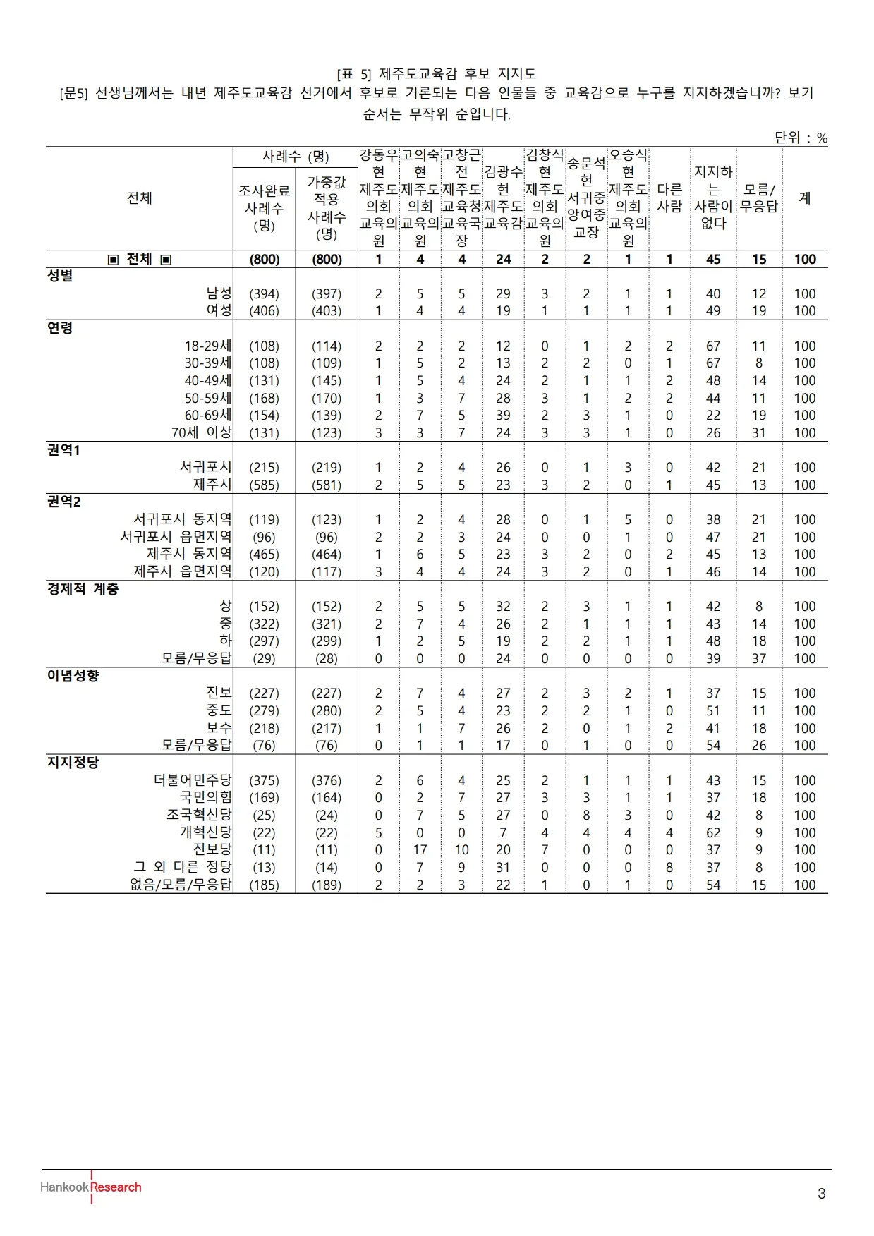 제주KBS 제주도민 추석 여론조사 결과표-지지도
