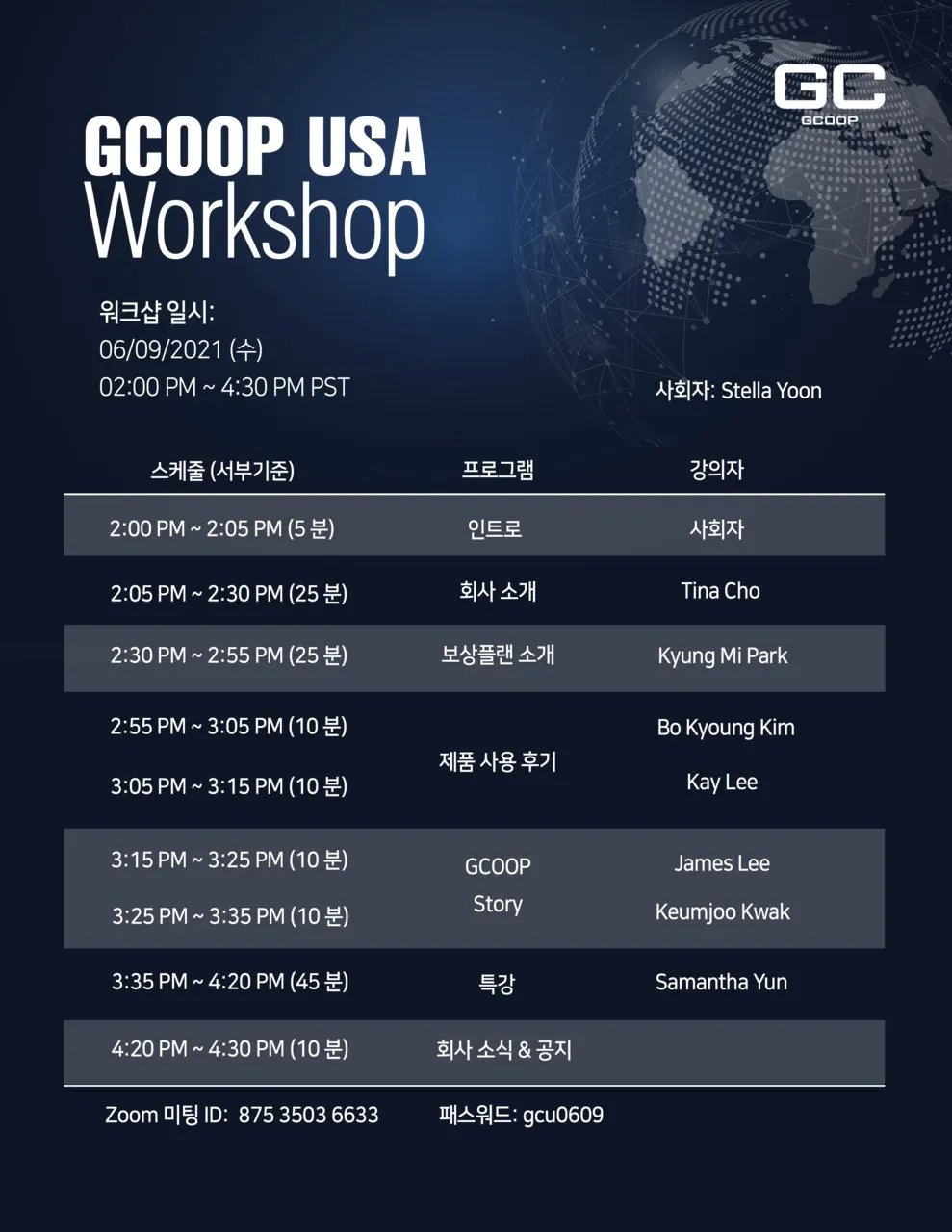 ์์์ผ : 10AM - ๋ณธ์ฌ ์ ํ ์ค ์ธ๋ฏธ๋, 7PM ์์ ์ง์ฟ ํผ ์ธ๋ฏธ๋, 10:30AM USA Tea Time Meeting