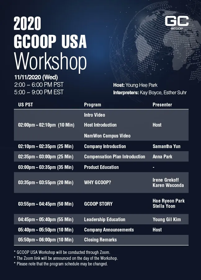 ๋ฏธ๊ตญ ์ํฌ์ต GCOOP USA WORKSHOP 2020