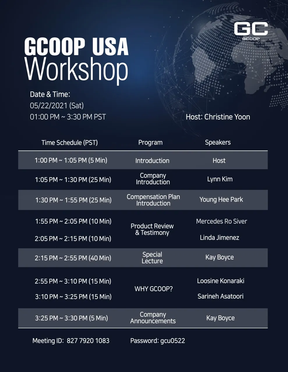 ์์์ผ : 10AM - ๋ณธ์ฌ ์ ํ ์ค ์ธ๋ฏธ๋, 7PM ์์ ์ง์ฟ ํผ ์ธ๋ฏธ๋, 10:30AM USA Tea Time Meeting
