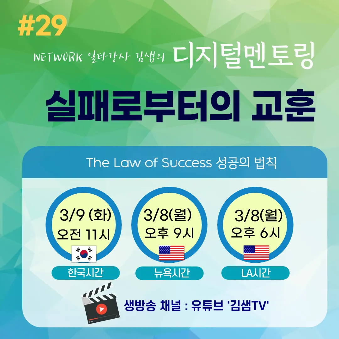 ํ๊ตญ์์๋ ๋งค์ ์ฒซ์งธ์ฃผ ๊ธ์์ผ์ ์ง์ฟฑ ์๋ฐ์ด ์ธ๋ฏธ๋๊ฐ ์ ํ๋ธ๋ฅผ ํตํด์, ๋ฏธ๊ตญ์์๋ ๋งค์ ์ฒซ์งธ์ฃผ ์์์ผ์ ์๋ฐ์ด ์ธ๋ฏธ๋๊ฐ ์ค์ ํตํด ์๋ฐฉ์ก ๋ฉ๋๋ค. ๋๋ง์์๋ 3์ 20์ผ 3์ ์๋ฐ์ด ์ธ๋ฏธ๋๊ฐ ์งํ๋ฉ๋๋ค.
