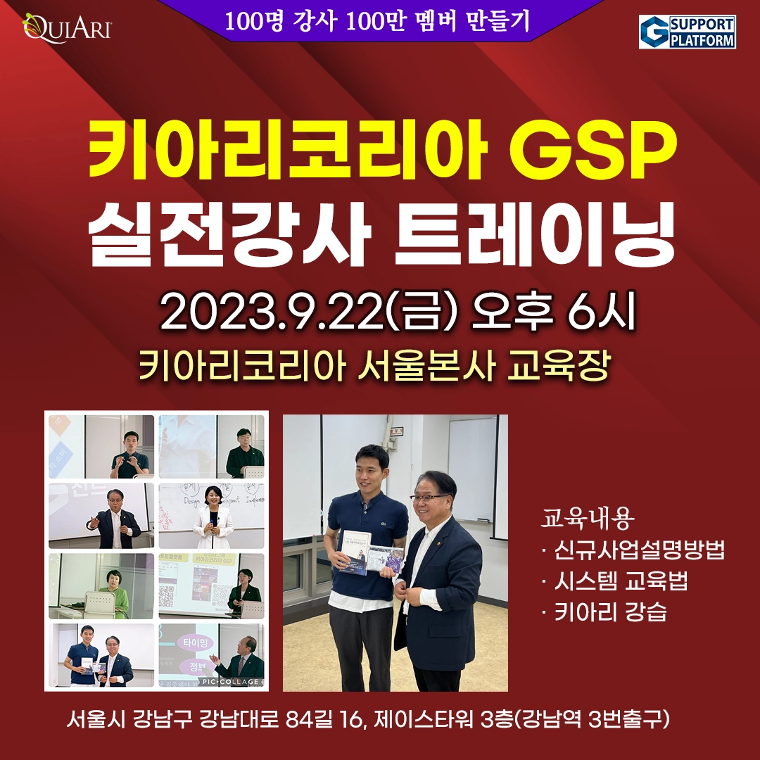 키아리코리아 GSP 실전강사트레이닝 / 키아리코리아 서울 본사 교육장 2023.9.22(금) 오후 6시