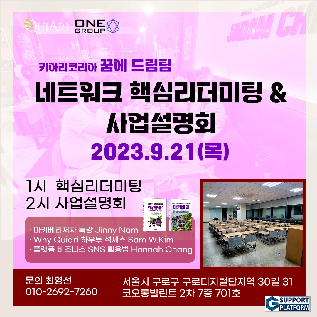 꿈에 드림팀 핵심리더 미팅과 사업설명회 / 2023.9.21(목) 오후 1시, 2시