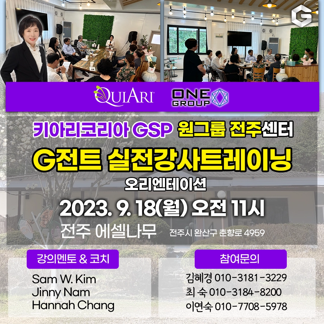 원그룹 전주 G전트 실전강사트레이닝 / 2023.9.18(월) 11시