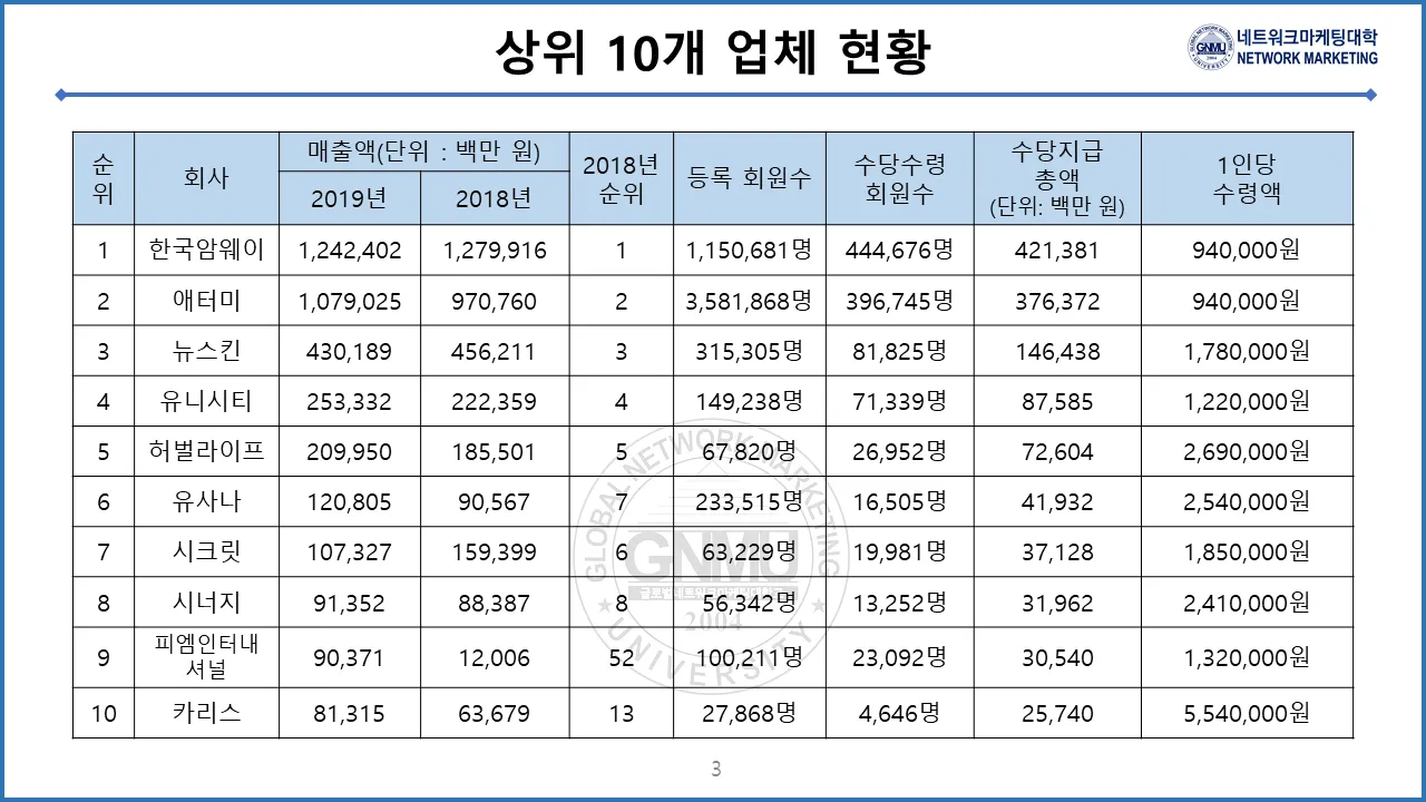 2020๋ ๊ตญ๋ด ๋คํธ์ํฌ๋ง์ผํ ์ ์ฒด ๋งค์ถ์์, ๋งค์ถ์ก ์ฃผ์ ํํฉ