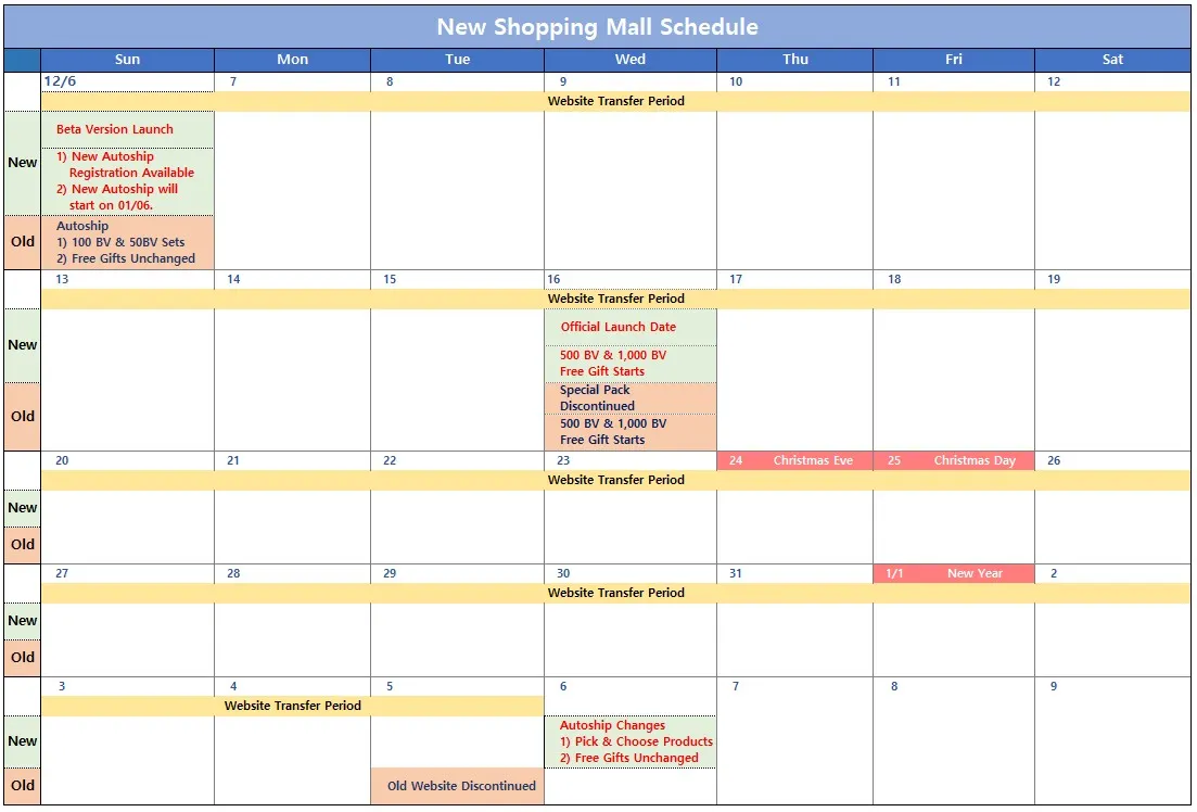 2021년 1월 6일(수)부터 한국과 글로벌 원서버 비즈니스 환경에 맞추어 자격 단순화, 유지 조건 단순화, 추천/후원/추천매칭/승급 수당 정산 기준의 변경 등 새로운 보상플랜으로 변경 시행됩니다.